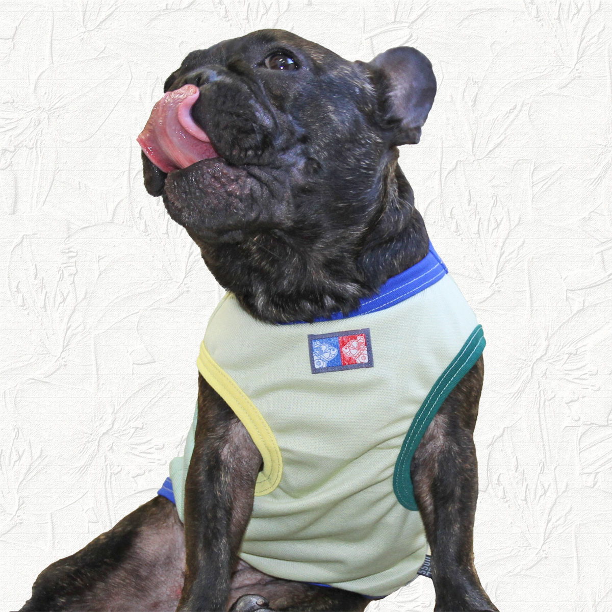 服を濡らさなくても冷やせ、濡らすとさらに効果がアップ! 汗をかかないブヒは暑い時期は体温調節が非常に苦手、そこで逆に体温を下げる目的で濡らした洋服を着せて、水分が蒸発するときの気化熱を利用したり、このように保冷剤を使用して体温調整をします。ほぼ全身を冷やせるので暑い季節に用意する必需品。いざという時の為にお散歩バッグの中にも是非1枚入れておきましょう!