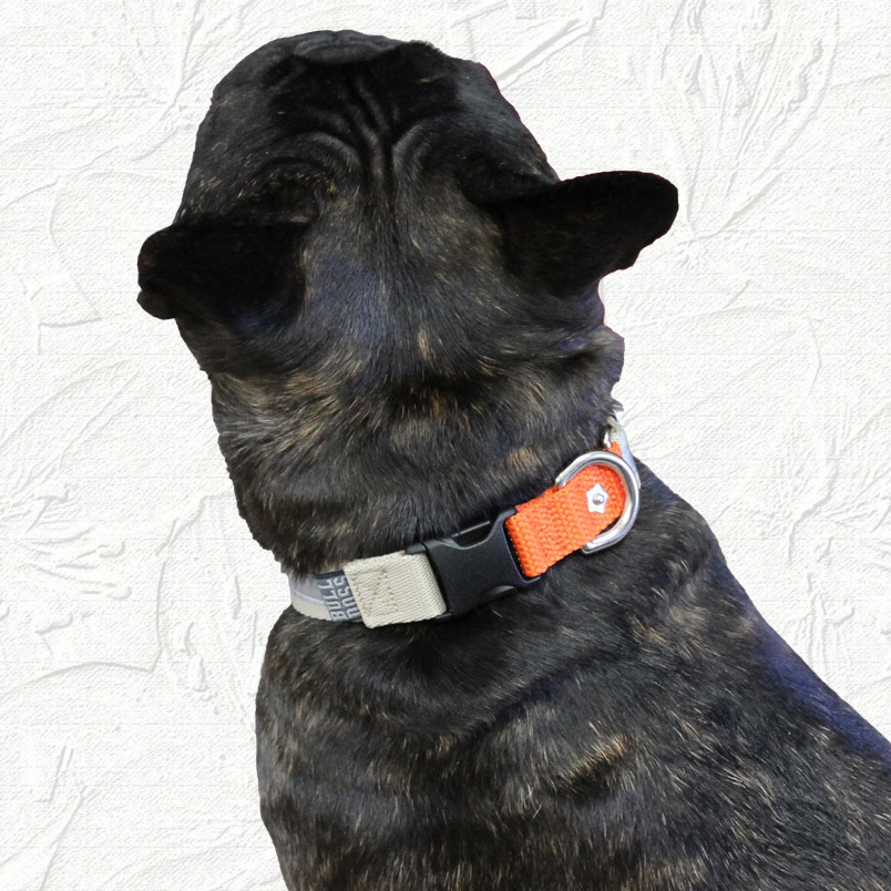 大事なプラバックルは耐荷重80㎏の丈夫な物を使用し、首に沿い易いように短かめのカーブ型、耐久性を備えたストレスフリーなカラーに仕上げました。