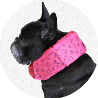 3サイズありますがフレブルは顔が大きいのでMサイズがお勧め。Sサイズはパピーや顔が小さく首が細い子用(ボステリなど)、Lサイズはイングリッシュブルドッグやフレブルで特に首が太い子用です。