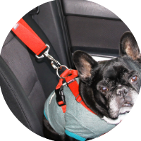 そしてもう一つのおすすめの利用方法が、車のヘッドレスト部分にかけてハーネスに直接繋げるとシートベルトとして使用でき、 運転席に来ないようにするなど、車内の行動を制約できるのでドライバーもブヒにも安心です。
