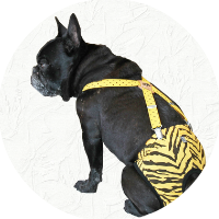 女の子のヒート時は人間の生理用品もご使用になれますが、オチッコには吸収力が不足です。オムツの上のオーバーパンツで使用される場合は1サイズ大き目をお選び下さい。