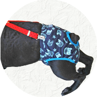 こちらは動きやすさと尻尾に触らない事を重視して作ったマナーパンツです。用途に合わせてオムツと使い分けや、重ね履きをお願い致します。
